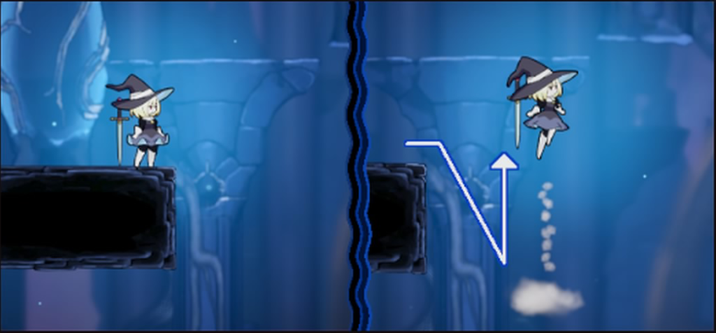1度もジャンプしていない状態なら、落下中もジャンプすることができる。例えば、崖端から落下し、落下中にジャンプすることで横方向の移動距離を延ばす事ができる。