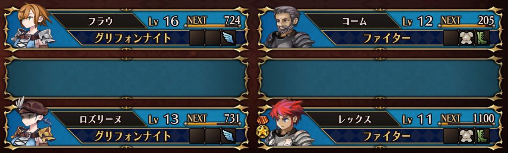 『ブラックナイト』用のユニットです。グリフォンナイトのスキル『ハイスイング』でブラックナイトを一掃しましょう。アシスト射撃対策で、『ファイター』をリーダーにしています。