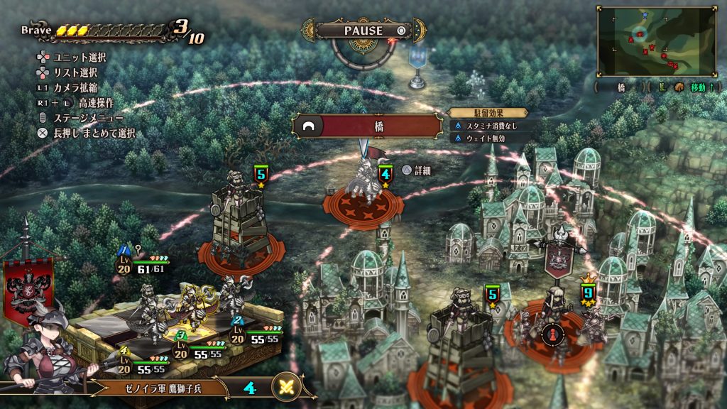 『橋』にいる鷹獅子兵を、ヴァンガードのブレイブスキル『アトラクト』で引き寄せることで、アシスト射程外で戦うことが可能です。