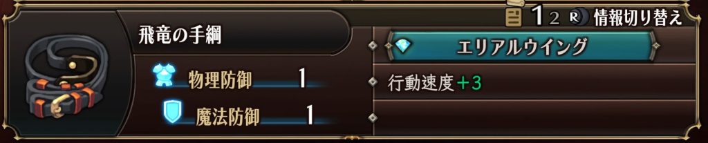 アクセサリ『飛竜の手綱』は『必中』を付与でき、グリフォンルーラーのスキル『ハイスイング』と組み合わせる事で、敵後列を処理しやすくなります。