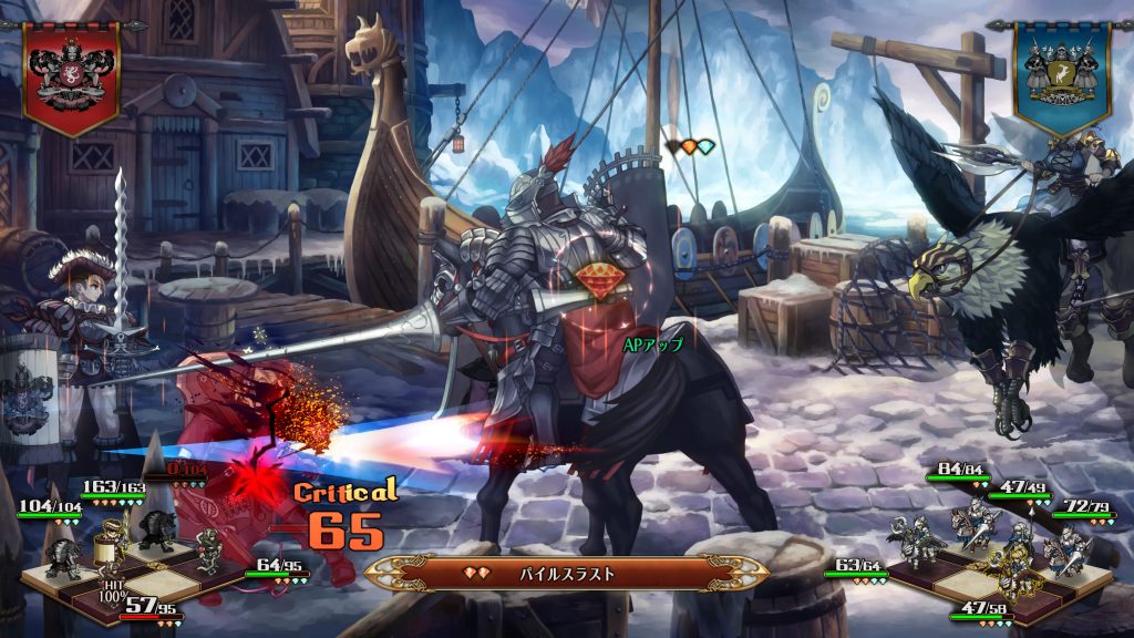 前列の『シールドシューター』は、『グレートナイト』のスキル『パイルスラスト』でAP+1させつつ撃破しましょう。