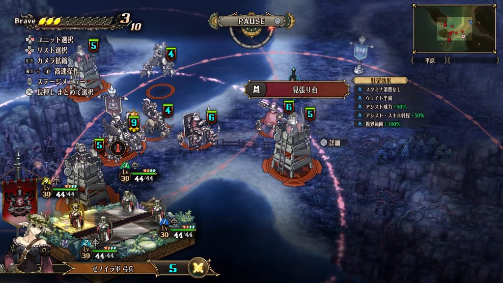 フィールド上に『見張り台』が複数設置されており、無暗に進軍すると手痛い反撃を受けるので注意が必要です。