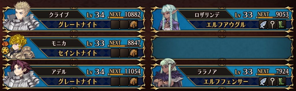 本クエストでは、『ワイバーンルーラー』や『グリフォンルーラー』は出現しないので、『騎馬系』を多めに配置しています。ロザリンデのスキル『精霊の怒り』で敵に『気絶』を付与し、その間に撃破していきます。